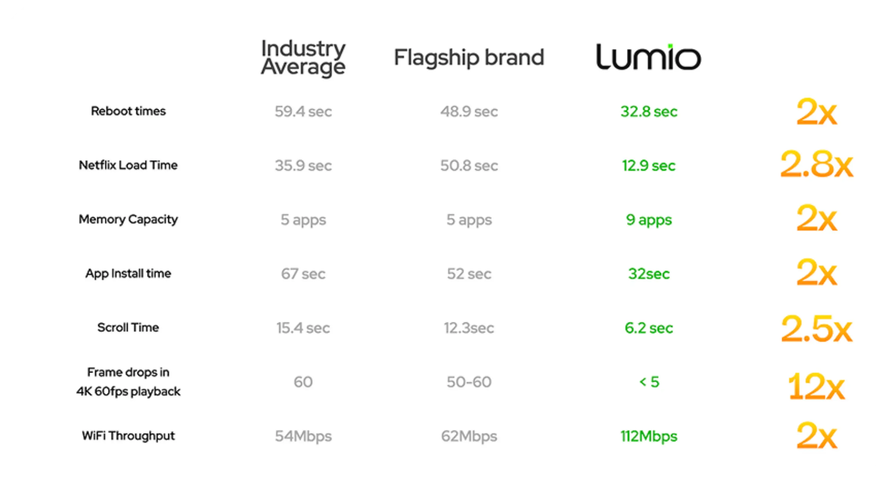 Lumio Vision leaves legacy brands behind with its speed. It boots up the TV faster, opens and installs OTT apps quicker, switches between apps smoothly, and scrolls effortlessly.